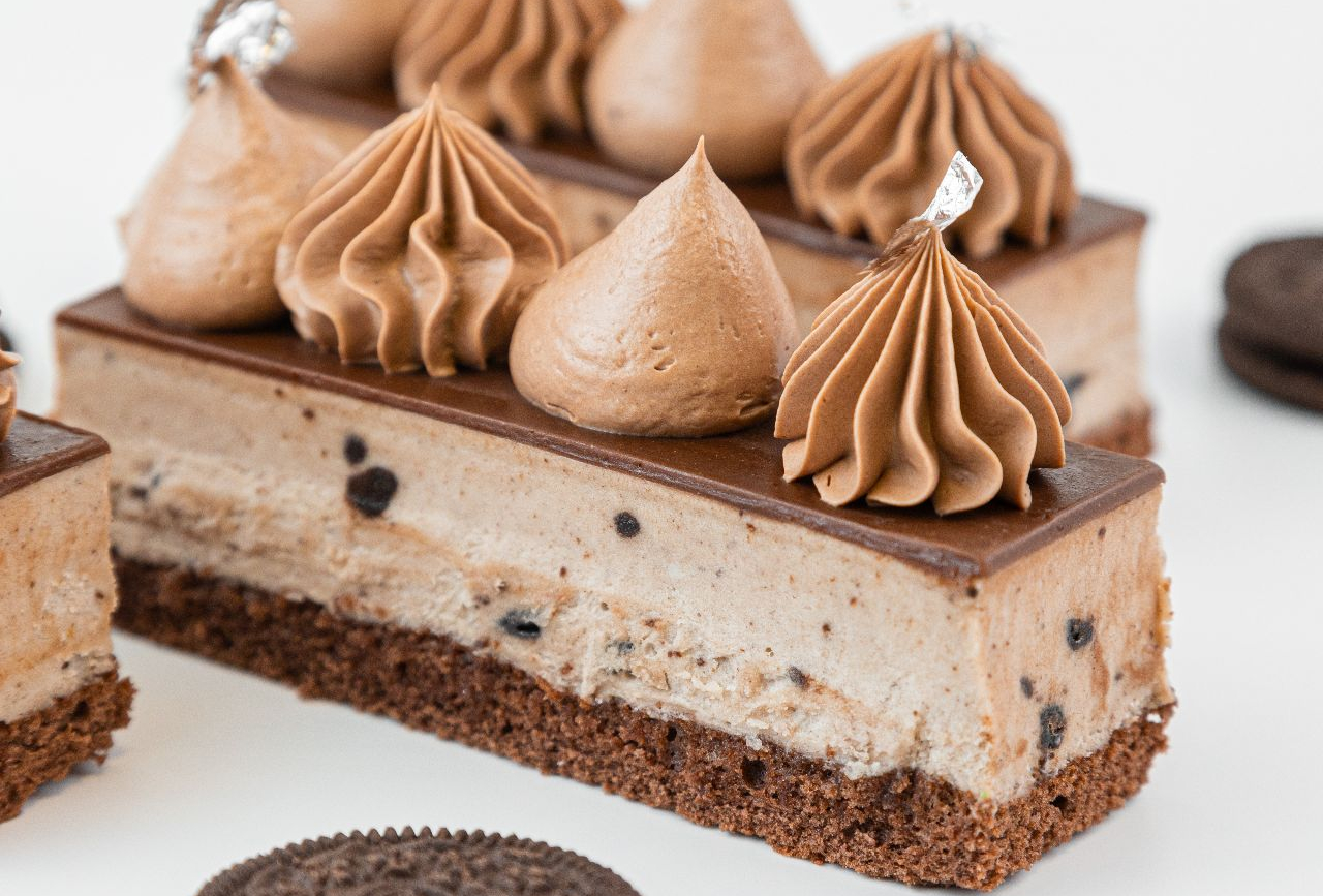 с печеньем орео , залитый молочным шоколадом.